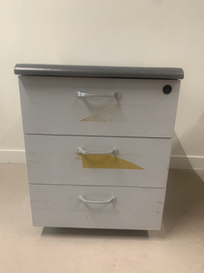 Un caisson à 3 tiroirs verrouillable sur roulettes, pas beau mais fonctionnel > pour voir des photos, voir annonce en ligne ici sur le bon coin.