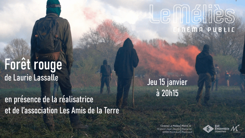 Projection-débat du documentaire "Forêt rouge", jeudi 15 janvier 2026 à 20h15 au cinéma Le Méliès à Montreuil.
