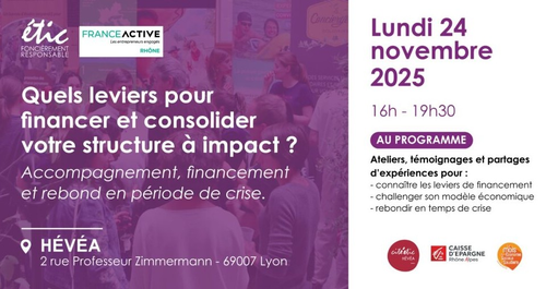 C’est pourquoi ETIC et France Active Rhône vous invitent à une rencontre professionnelle pour explorer ensemble :